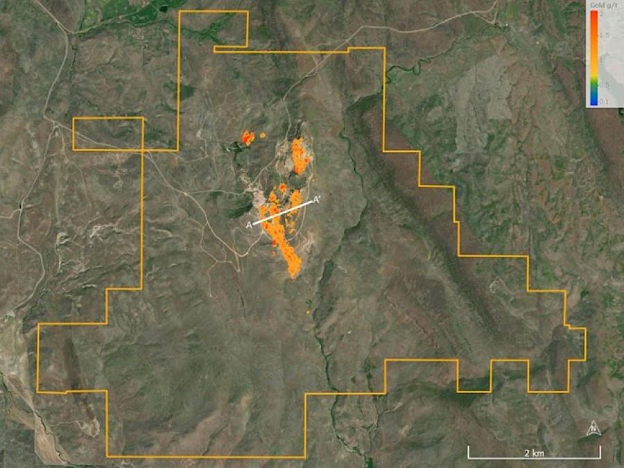 - Mineral Resources are reported at a cut-off grade of 0.20 g/t Au for an open-pit mining scenario. Cut-off grades are based on a price of US$2350/oz gold, and a number of operating cost and recovery assumptions, including a reasonable contingency factor. Metallurgical recoveries of 80% were used. Densities based on lithology were assigned.