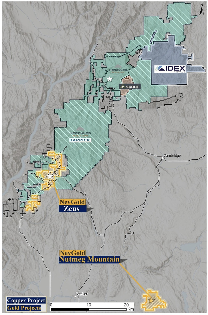 NevGold’s Zeus Copper Project (100% owned) is located in western Idaho approximately 35 kilometers northwest of our Nutmeg Mountain gold deposit (100 % owned). The property benefits from well-maintained historical roads, providing excellent access for exploration activities.