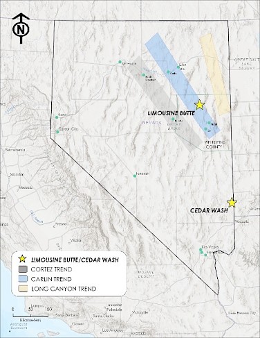 Nevgold’s Cedar Wash project is a high-potential, advanced exploration prospect located in Lincoln County, 75 kilometers southeast of Pioche, on the southern flank of the Clover Mountains.